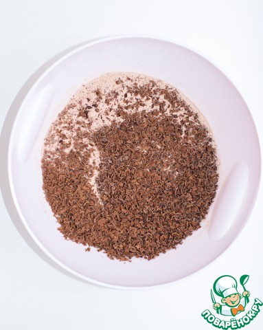 Просеять в отдельную емкость муку, разрыхлитель и какао-порошок. Шоколад натереть на терке туда же.