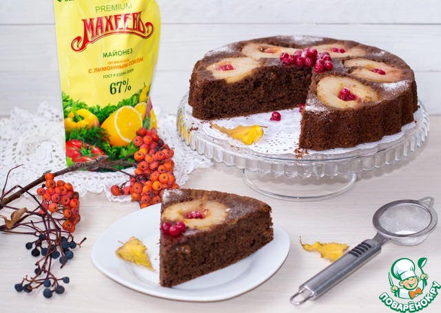 | Пирог очень вкусный! Классическое сочетание шоколадного бисквита и сладкой груши. А майонез придает тесту своеобразную пышность и мягкость. Всем рекомендую, особенно шоколюбам). |