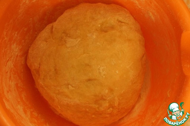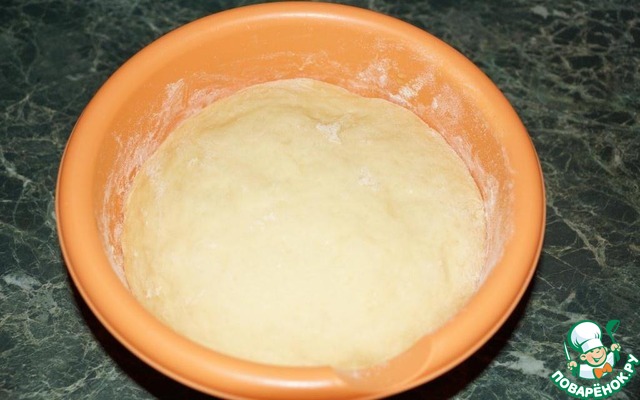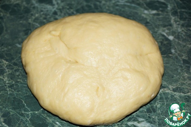 В опару добавляем сахар, щепотку соли, яйцо, растопленный (не горячий!) маргарин и муку. Вымешиваем до однородного состояния. Накрываем полотенцем и ставим опять в теплое место. Ждем увеличения объема в два раза (у меня на это уходит час).