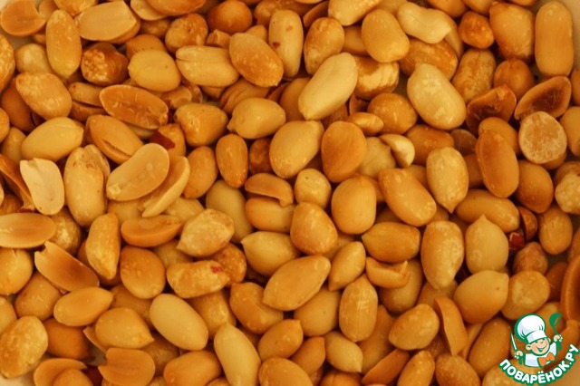 Пока идет процесс брожения, есть время заняться начинкой! Жарим и чистим орехи. Я пользуюсь для этого, как впрочем и многие, микроволновкой. Небольшую порцию арахиса (в один слой) я насыпала в тарелку и поставила на 4 минуты на самую высокую мощность. Теперь чистим и готово!