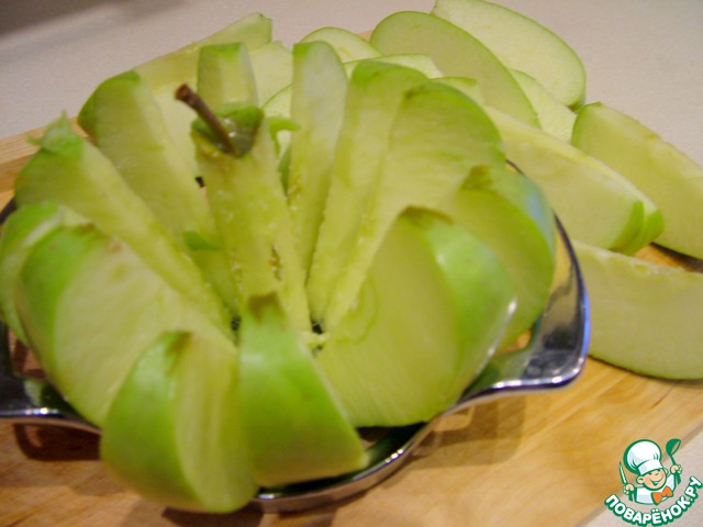 Приготовьте яблоки. Нарежьте их не толстыми дольками. Лучше, если они будут с кислинкой. Яблочный сок перемешается с карамелью, и это будет нечто! Если они крупные, то скорее всего вам хватит одного-полутора. У меня с этим проблем нет - остатки с удовольствием "утилизируют" дети.
