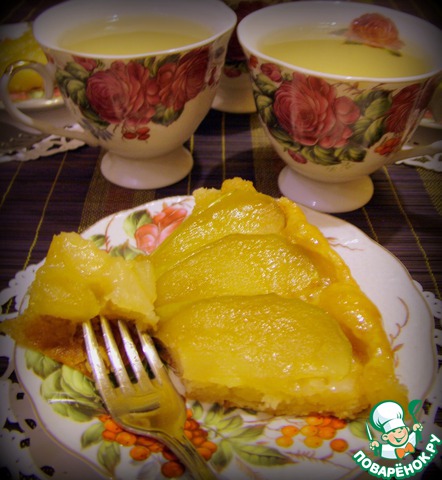 Яблочные дольки уложите на карамель. Это будет "лицо" нашего пирога.