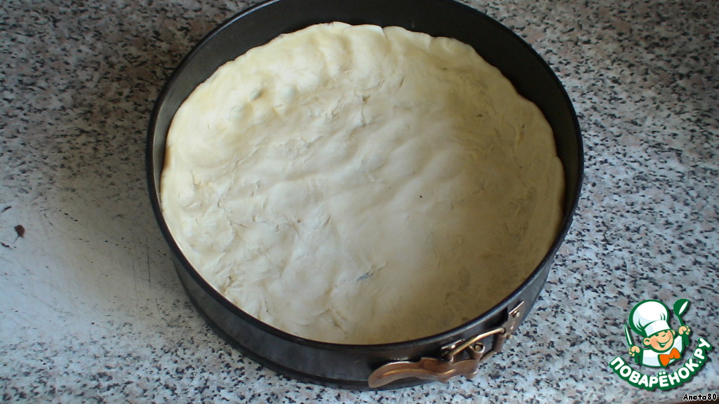 Достаем наш колобок из холодильника и теперь равномерно распределяем тесто по форме (у меня съемная форма). Края нашей корзинки поднимаем примерно на 3 см. Ставим в духовку (180 град.) примерно на 20мин., он должен слегка подрумяниться.