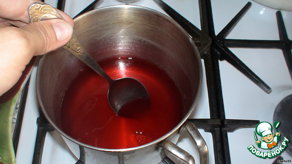 На плите разводим желе для торта (инструкция есть на пакете)