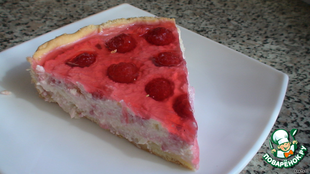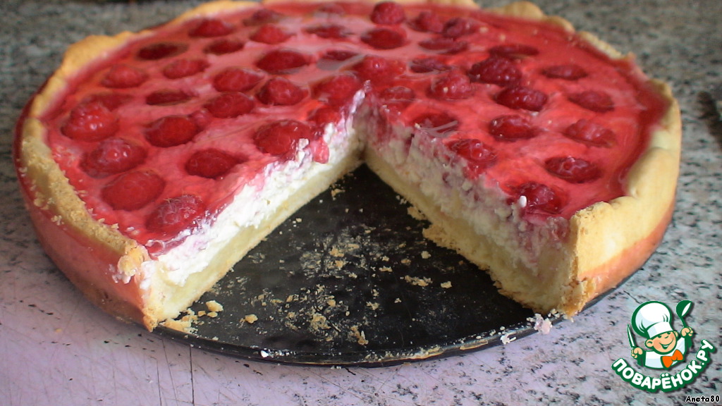 И заливаем наш пирог, прямо на малину! У меня всегда желе немного вытекает за пирог, когда я снимаю форму, получается ободок.