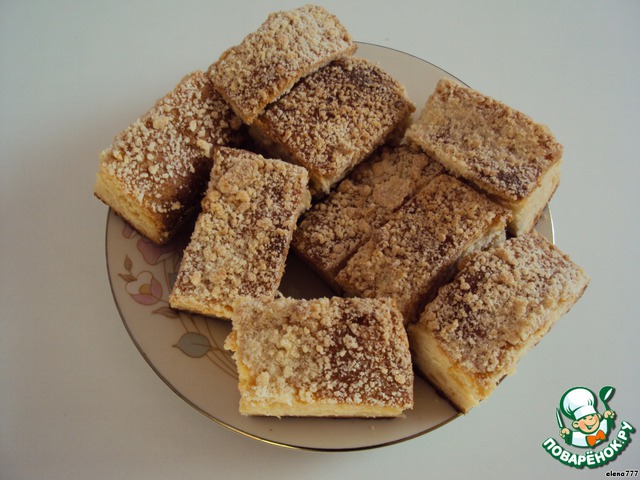Посыпать верх теста масляно-сахарной крошкой и поставить в разогретую духовку на 30-40 минут. Выпекать при температуре 200 градусов.