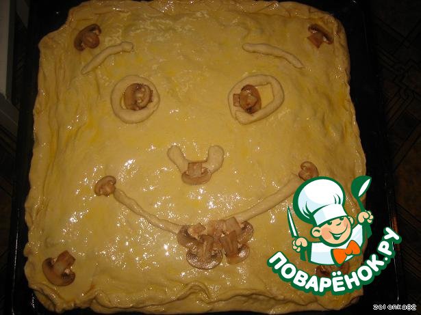 Второй слой теста кладем сверху и смазываем яйцом...