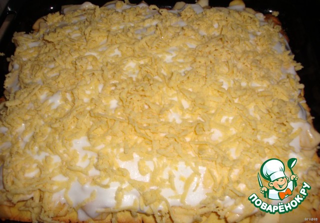 Тесто выложить в форму, разровнять. Выпекать 15 минут.