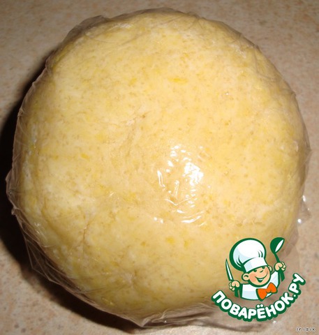 Делаем крошку. Мягкое масло, муку, сахар и желток все хорошо замесим, завернем пищевую пленку и поставим в морозильную камеру на 40 минут.
