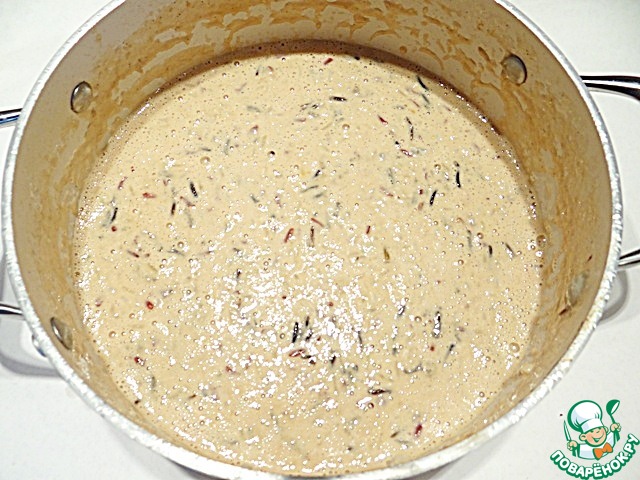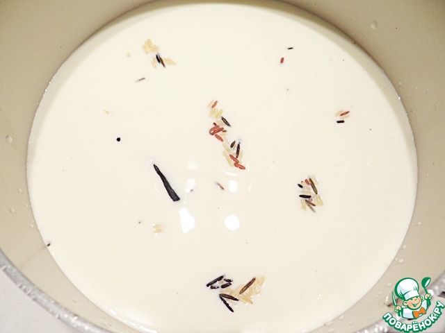 Добавляю молоко, соль, стручок ванили и довожу до кипения. Огонь убавляю и готовлю кашу при закрытой крышке примерно 35 минут, время от времени помешиваю. Даю каше остыть.