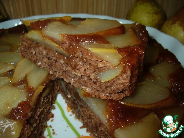 | Этот пирог - очень вкусное лакомство не только в пост. Он очень ароматный. Груши в карамели идеально сочетаются с тестом, в которое добавлены овсяные хлопья, груша и какао. Такой пирог будет эффектен и на праздничном столе |