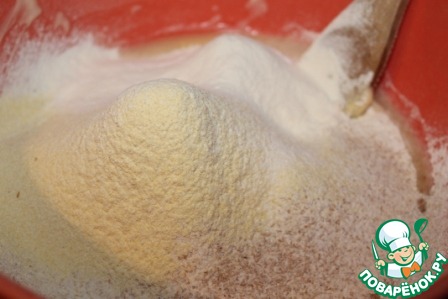 Добавляем какао, корицу, ванилин, щепотку соли, сахар (20гр), перемешиваем и замешиваем гладкое тесто.