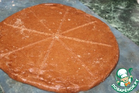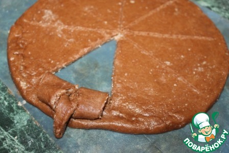 Сделать в центре раскатанного круга сквозные, но не доходя до краёв, разрезы в виде снежинки.