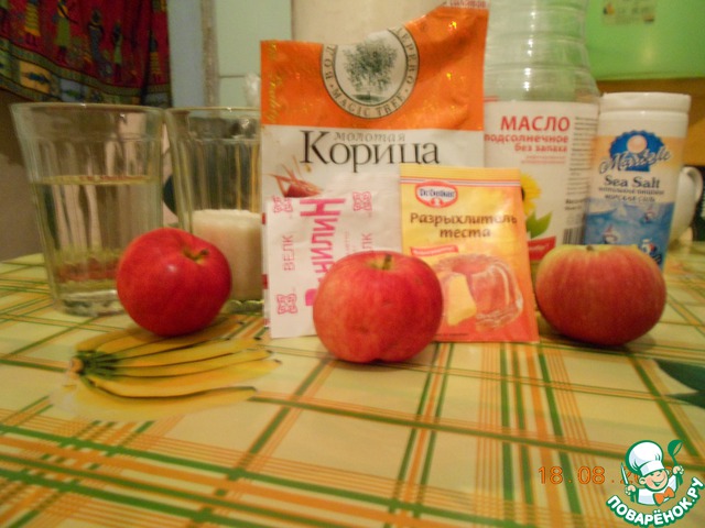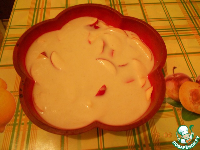 Выливаем тесто на яблоки и ставим пирог в духовку, примерно минут на 30 (ориентируйтесь по своей духовке).