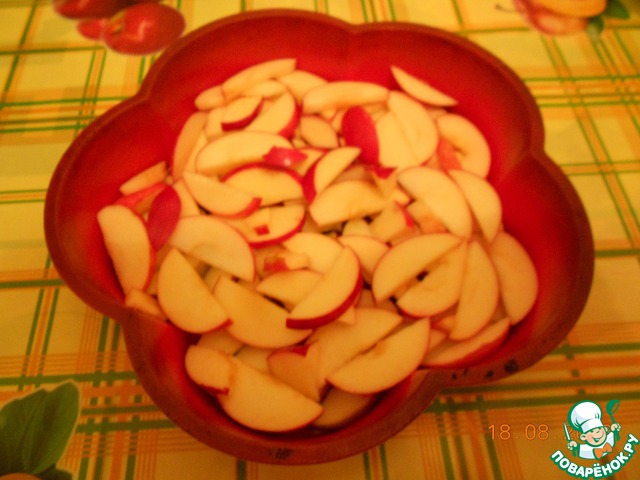 Подготовим яблоки: помоем, нарежем на кусочки - можно ломтики покрупнее, а можно помельче.