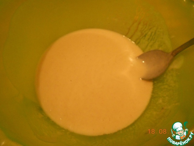 Смешиваем отдельно сухие ингредиенты и масло с водой, потом объединяем всё вместе и замешиваем тесто - оно получается жидким.