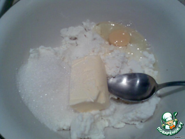 Смешать творог, яйцо, щепотку соли, 3 ст.л. сахара, ванилин (д/пирожков со сладкой начинкой), размягчённый маргарин. Хорошо размять руками.