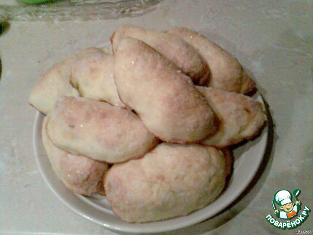 Верх "язычка" смазать растительным маслом и обмакнуть в сахар. Выложить наши пирожки на противень, застеленный промасленной бумагой. Поставить в горячую духовку и выпекать при температуре 180 градусов примерно 30 минут.