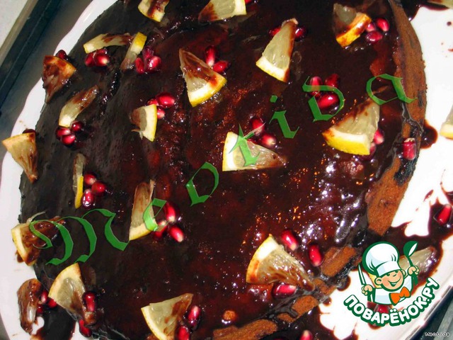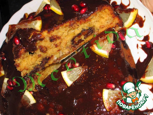 Поливаем пирог глазурью, украшаем на свой вкус (я взяла кусочки лимончика и ягодки граната).