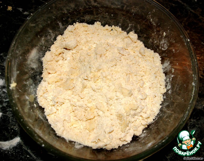 Добавить муку и перетереть все руками.