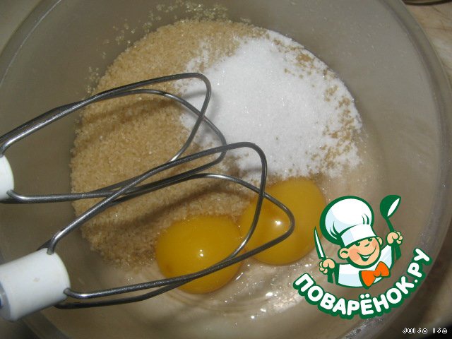 Отделяем белки от желтков. Желтки растираем с оставшимся сахаром и ванильным сахаром.