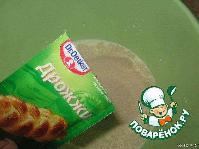 Ставим тесто. Для этого в подогретых сливках (они не должны быть сильно горячими) растворяем дрожжи.