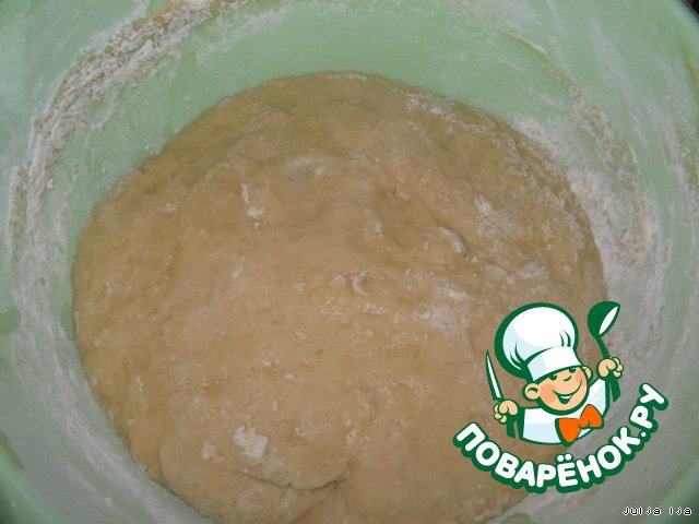 Добавляем оставшуюся муку. Вымешиваем тесто, которое практически не прилипает к рукам. Муки может потребоваться немного больше.