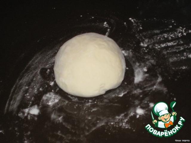 Муку высыпать на стол, положить маргарин и порубить это все ножом. Сделать воронку, туда влить яйцо, воду, соль и уксус. Замесить тесто и на 1 час поставить в холодильник.