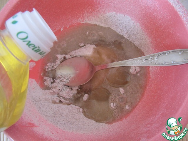 В миску просеять ржаную муку, добавить соль, сахар, ванильный сахар, воду,