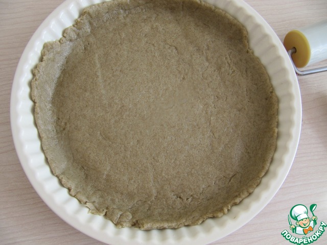 Раскатать большую часть, уложить в форму, сделать бортики.