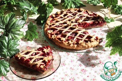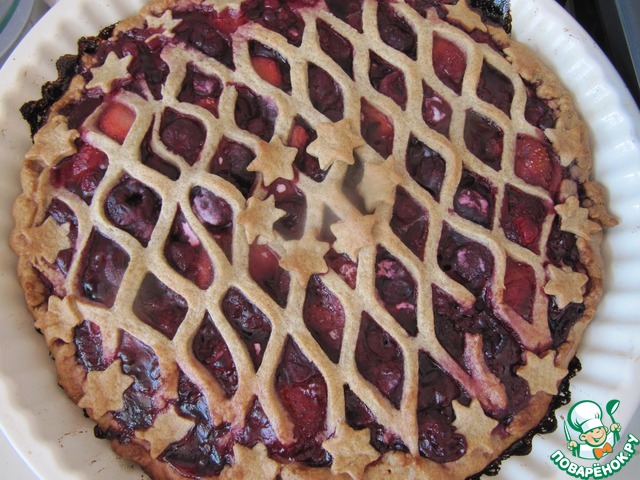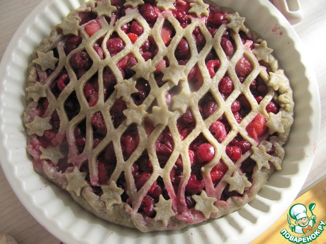 9. Раскатать меньшую часть теста, вырезать решетку специальным ножом, можете просто тестом накрыть пирог сверху, аккуратно защипать края, смазать пирог кисточкой растительным маслом. в середине сделать небольшое отверстие для выхода пара.