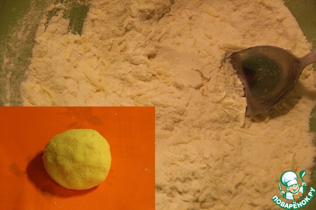 Замесить ингредиенты, полученное тесто завернуть в пищевую клеёнку и поместить в холодильник на 30-60 минут.