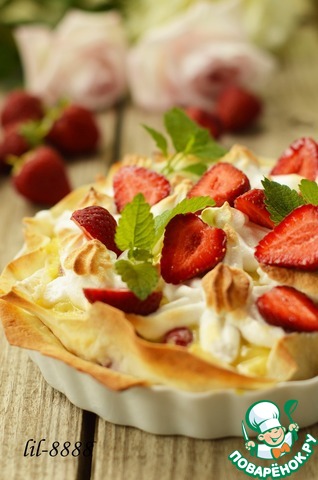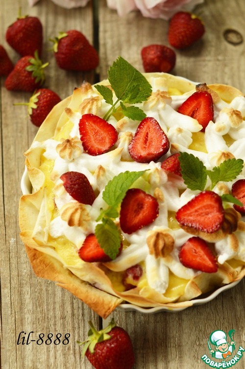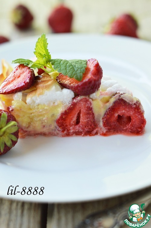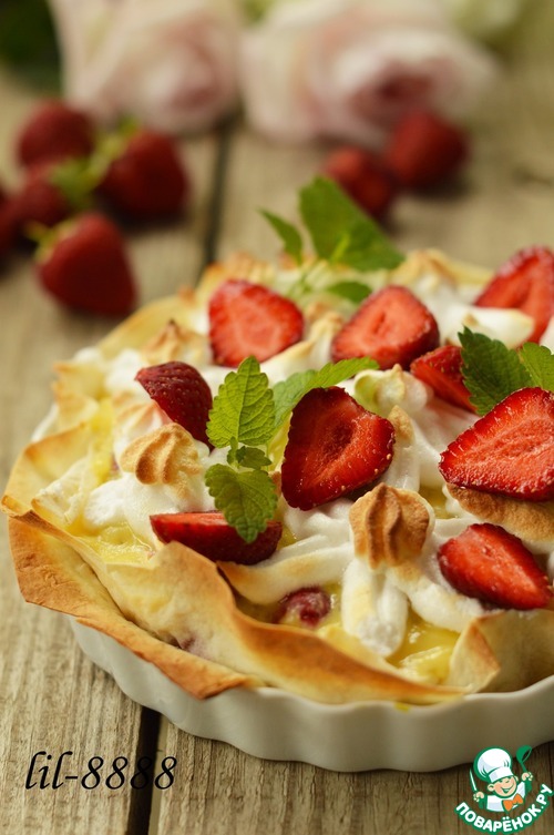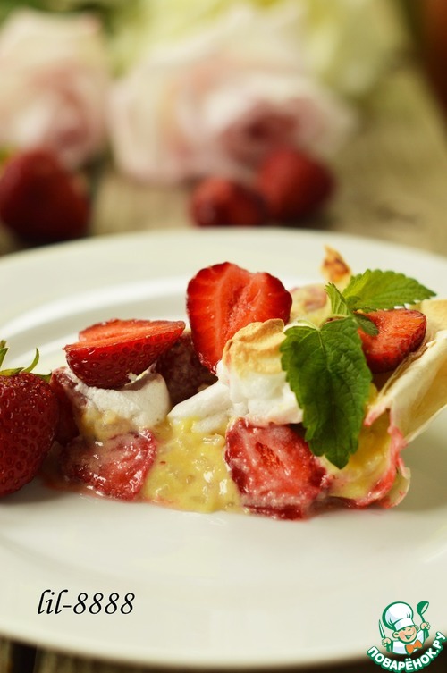 Тарт с рисом, белым шоколадом, клубникой и меренгой