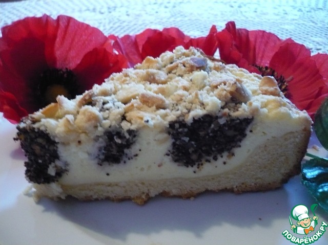 Мак всыпать в кастрюльку и залить молоком, проварить мин 20 и снять с огня туда же добавить орех и сахар перемешать, затем на обычной мясорубке все это перемолоть и уже в остывший мак добавить яйцо и крахмал, сформировать небольшие шарики и положить в морозилку. Для теста мягкое масло растереть с сахаром добавить яйцо соль перемешать, постепенно добавить муку смешанную с разрыхлителем и сформировать шарик теста. Форму на 26 смазать маслом и присыпать мукой, положить в центр шарик теста и руками разложить по дну при этом сформировать не большие бортики и поставить в морозилку на 10 мин.