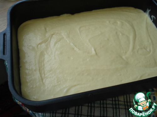 На большой противень выложить тесто. Поставить в разогретую духовку до 180 градусов, выпекать до полуготовности примерно 15-20 минут, пока немного не зарумяниться сверху.