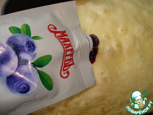Достаньте пирог из духовке, сразу же смажьте черничным джемом.