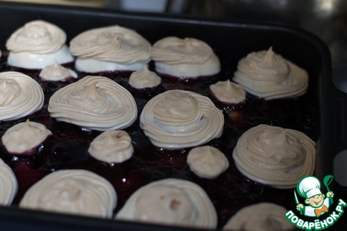 И отсадите на него безе, оставляя небольшое расстояние между ними, так как они увеличится в объеме.