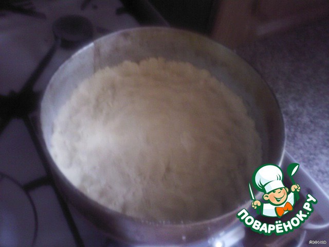 В смазанную маслом форму выкладываем 2/3 теста и слегка прижимаем его к краям формы.