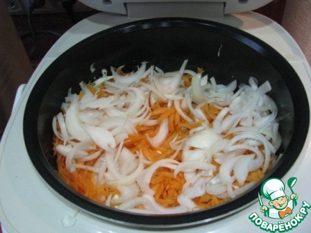 Капусту нашинковать, морковь натереть на крупной терке, лук нашинковать потушить, я сделала в мультиварке.