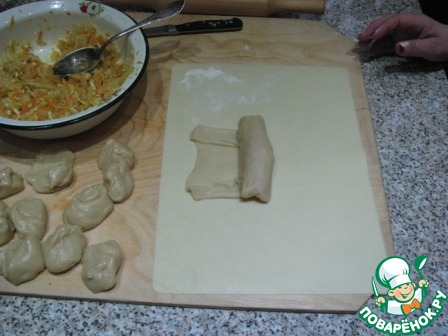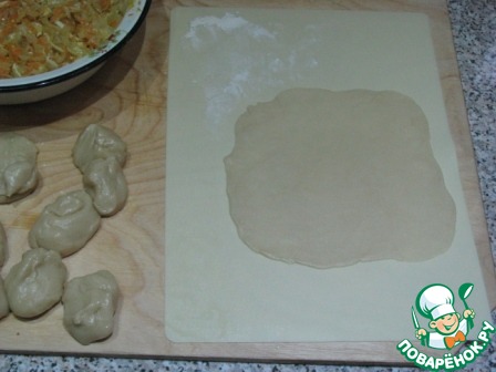 Формируем пирожки. Раскатываем тесто очень тонко.