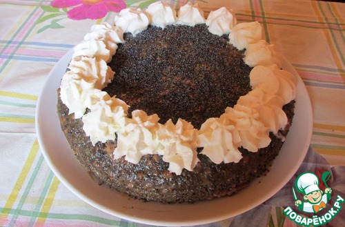 Но опасения мои были напрасны. К утру вся заливка замечательно впиталась. Для красоты я просто посыпала пирог сверху маком и украсила взбитыми сливками.