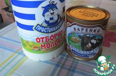 Нужно растопить полстакана сахара на сухой сковороде, довести его до красно-коричневого цвета, потом снять (!) на минутку с огня, залить молоком или сливками (350 мл) и вновь нагревать до растворения карамели.
