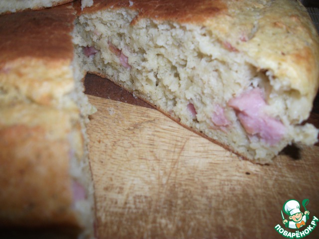 Выкладываем тесто в форму и выпекаем в духовке при 200 градусах около часа. Аромат чеснока печеного на всю кухню. Вот такой пирог получился.