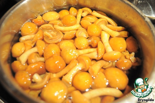 Опята опускаю в кипящую подсоленную воду на несколько минут.
