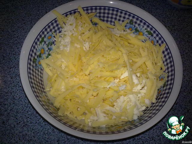 Сыры трем на крупной терке. Чем больше сыра тем вкуснее.