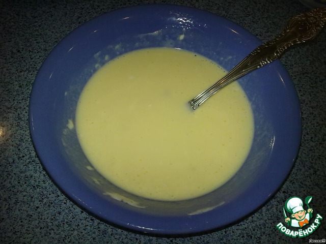 Готовим заливку - 2яйца смешиваем с 4-мя ст. ложками сметаны. Солим немного.