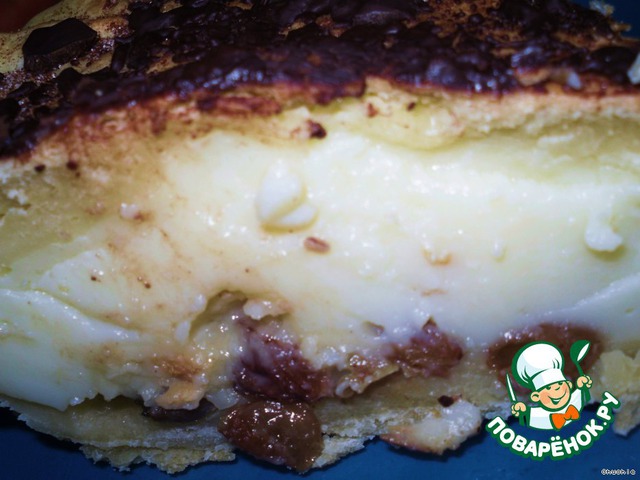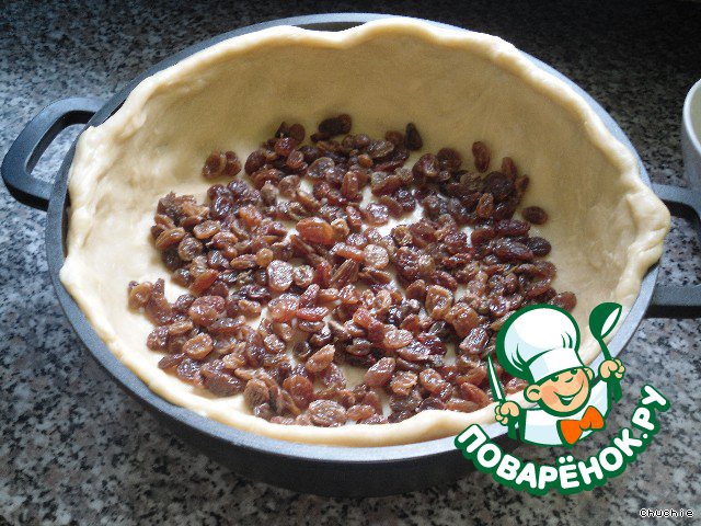 Раскатать оставшуюся часть теста тонким слоем и накрыть сверху пудинг. Края защипнуть.
