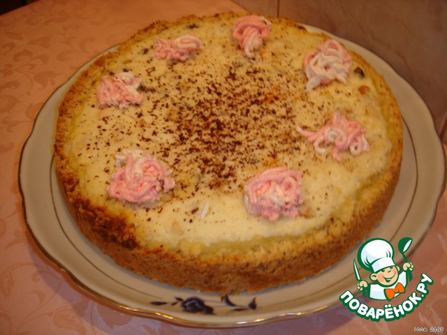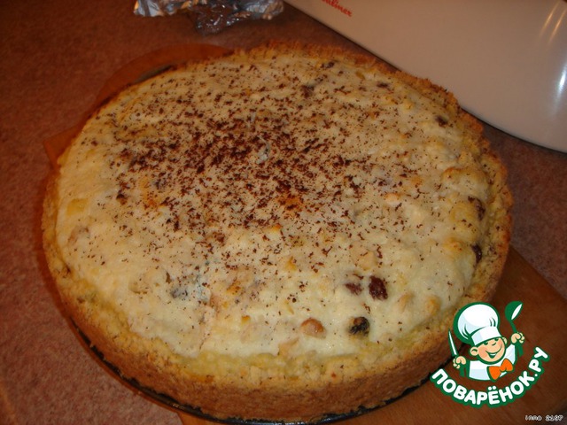 | Пирог из песочного теста с нежной начинкой из творога с добавлением орехов кешью и миндаля. |