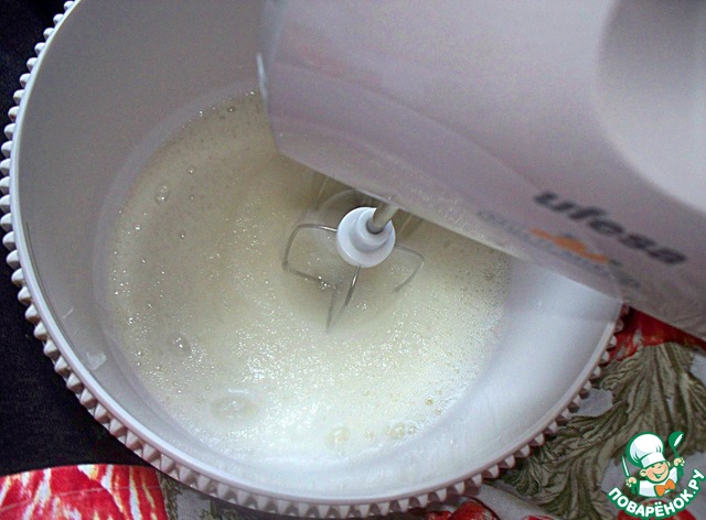 Крем. Берем 3 белка, взбиваем в сухой, чистой емкости, до образования пены, потом постепенно добавляем небольшими порциями сахар, лимонную кислоту.