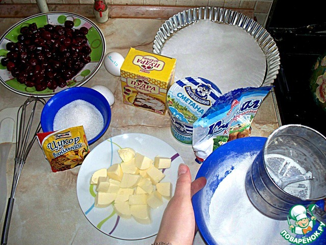 Подготовим все ингридиенты. Главное, за ранее разморозить вишни.